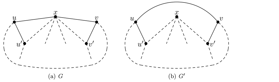 Proof. Suppose that G is a pseudo-Halin graph with and , where is the adjoint cycle of graph . Denote and labelling the vertices of in a similar way as used in Lemma 3. By Lemma 3, . Let and by the similar way used in the proof of Lemma 3, there is a digraph such that