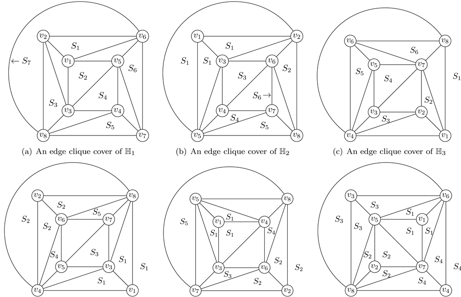 Then the family is an edge clique cover of . An edge clique cover of is shown in Figure 6(b).