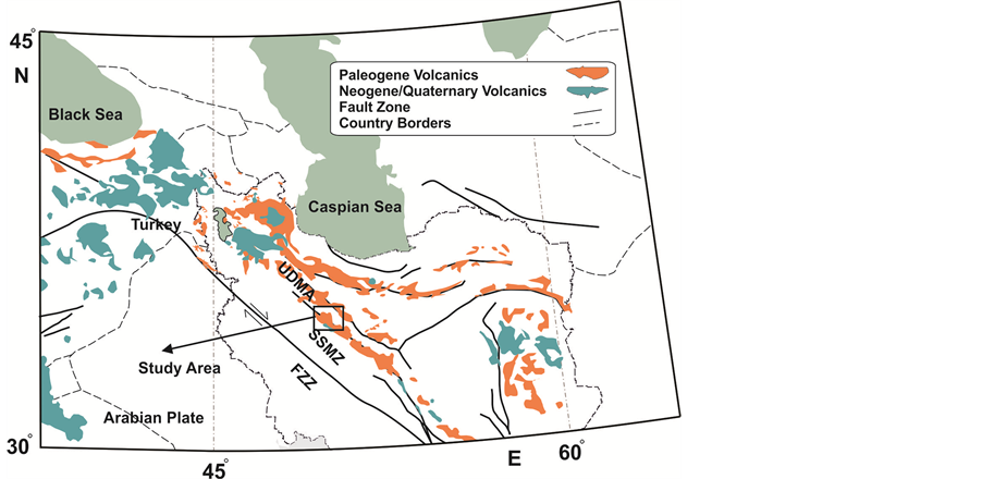 Figure 1. A simplified tectonic map shows the main tectono-magmatic features of the Iran and Eastern Anatoliaregions. UDMA―Urumieh-Dokhtar magmatic arc, SSMZ―Sanandaj Sirjan Metamorphic Zone, FZZ―Folded Zagros Zone.