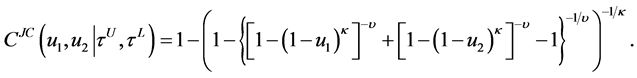 In contrast to the Clayton and the Gumbel copulas, the SJC copula considers both the lower and the upper tail dependence. If