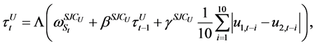 Equation (12) shows that the Kendall’s tau follows an ARMA(1,10) type process in which the autoregressive term