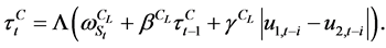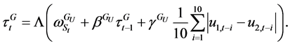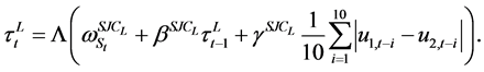 Equation (17) and Equation (18) show that the upper and lower tail dependence parameters follow an ARMA(1,10) type process in which the autoregressive terms