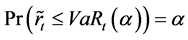 The VaR is a forecast of a given percentile, usually in the lower tail, of the distribution of returns on a portfolio over a given time period. At time t, the VaR of a portfolio, with confidence level