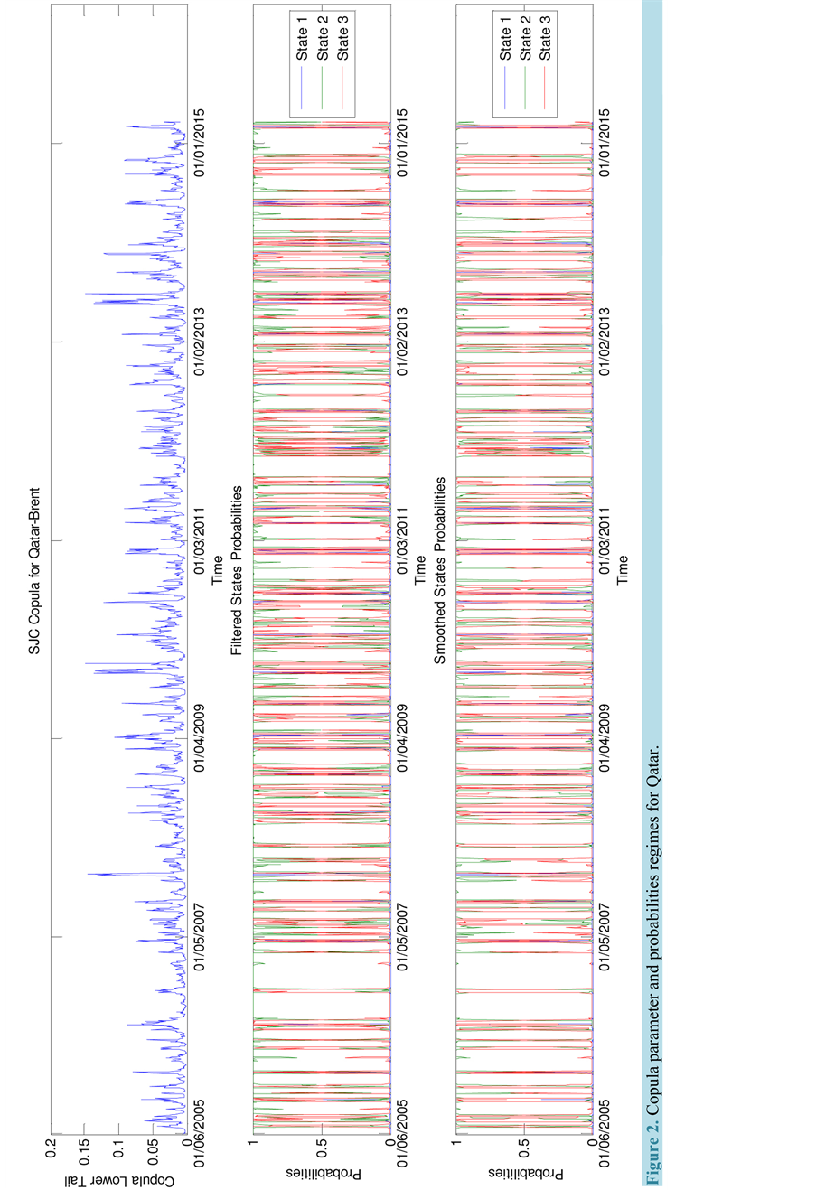 Figure 2.Copula parameter and probabilities regimes for Qatar.