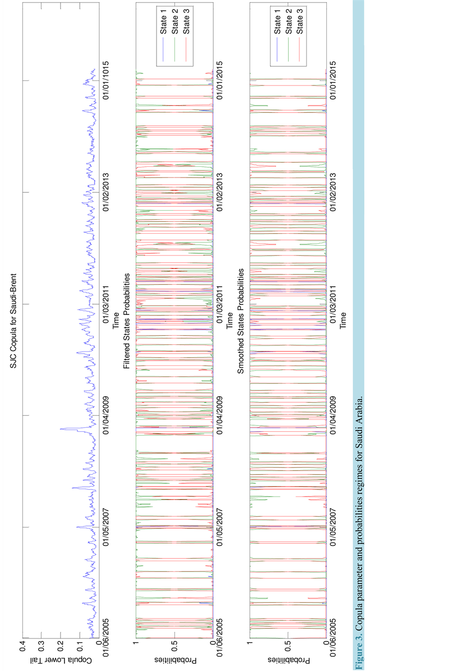 Figure 3.Copula parameter and probabilities regimes for Saudi Arabia.