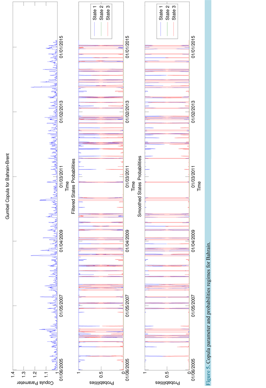 Figure 5.Copula parameter and probabilities regimes for Bahrain.