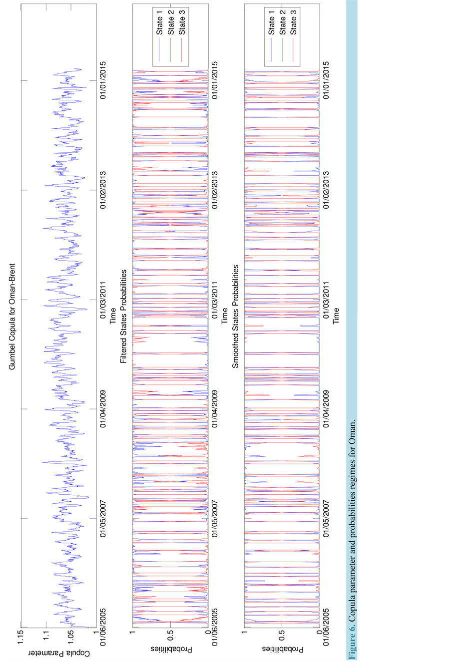 Figure 6.Copula parameter and probabilities regimes for Oman.