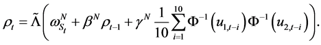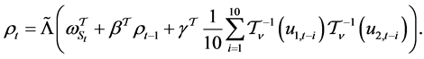 Equation (8) reveals that the copula parameter follows an ARMA(1,10) type process in which the auto- regressive term