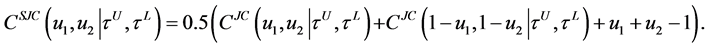 The SJC copula is [22] modification of the Joe-Clayton copula. It can be written as: