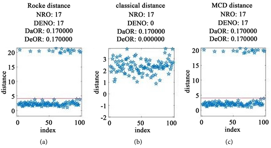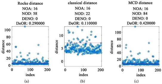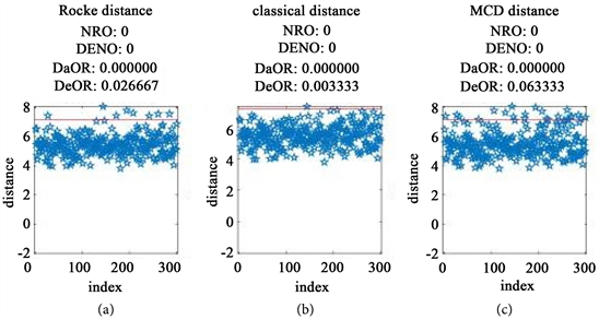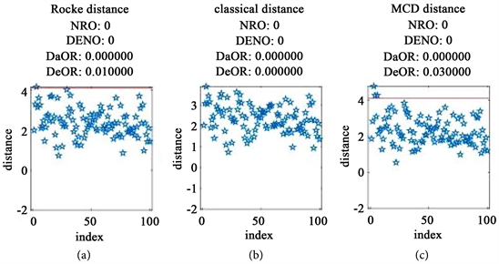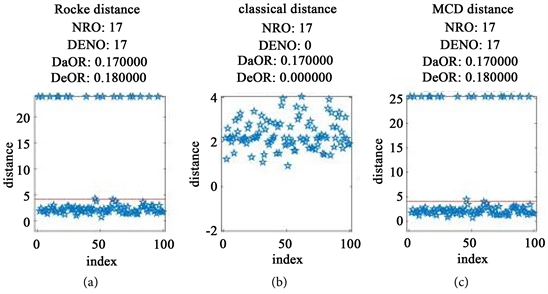 Figure 9. Diagnosed as benign data test results. (a) Rocked detection; (b) Classical detection; (c) MCD detection.