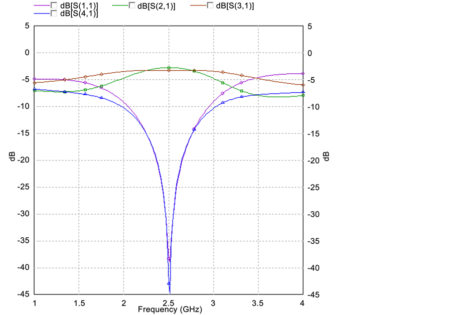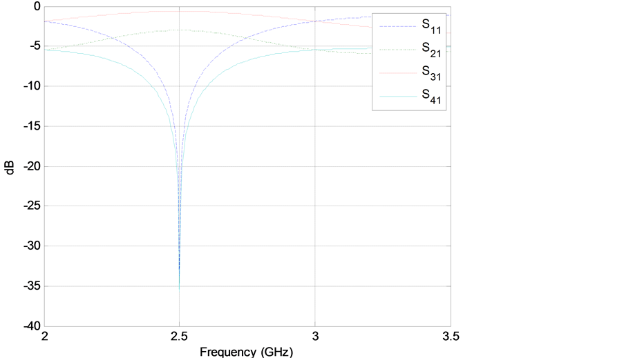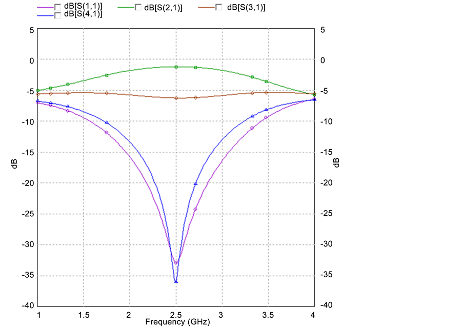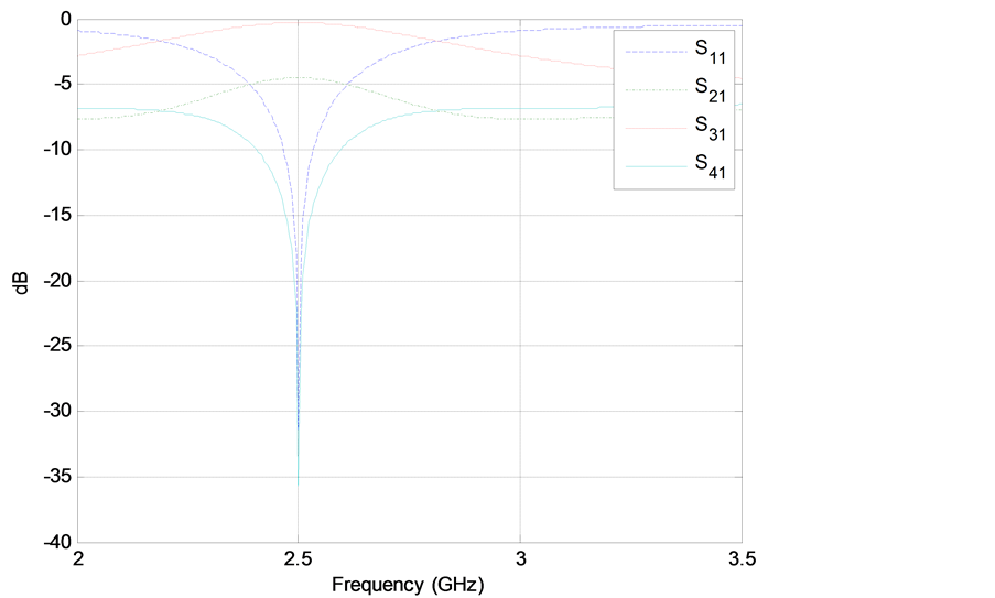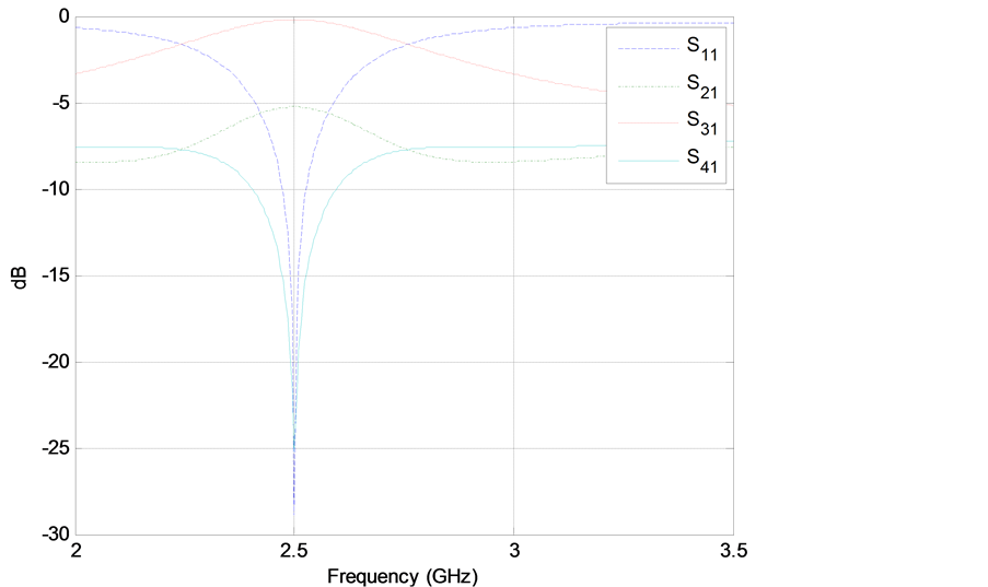 Figure 5. Conventional 3 dB BLC analytical S-parameters.