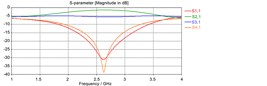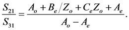 Transmission from Port 1 to Port 2 and from Port 1 to Port 3 could be written using vector representation given by Equation (1) as:
