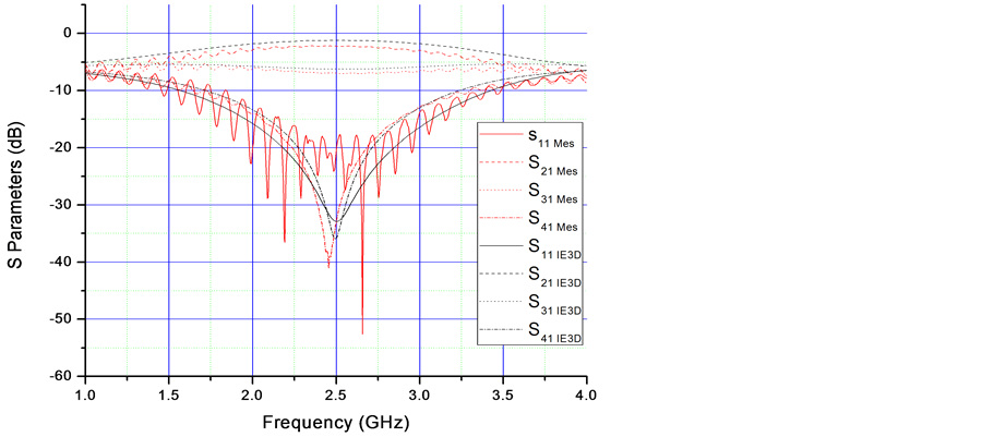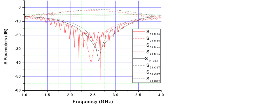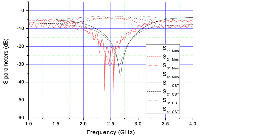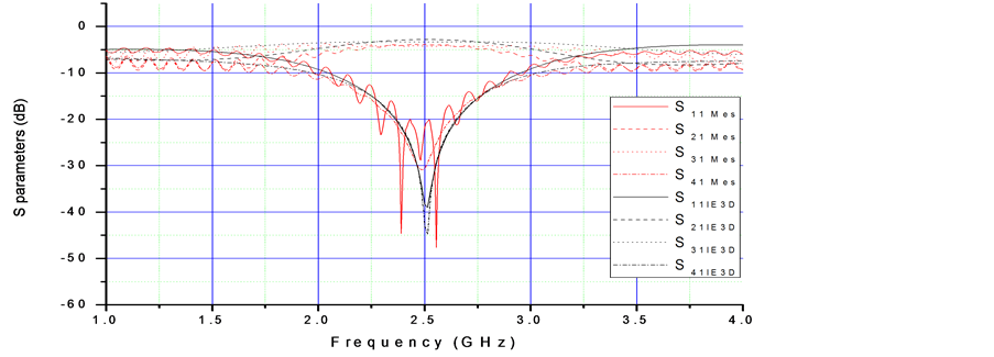 the same for both simulated and measured S-parameters. Also, Figure 14(a) and Figure 14(b) show both measured and simulated S-parameters using IE3D and CST respectively, at the short state. Better results are obtained when IE3D simulator is used rather than CST. At 2.5 GHz, the difference between measured