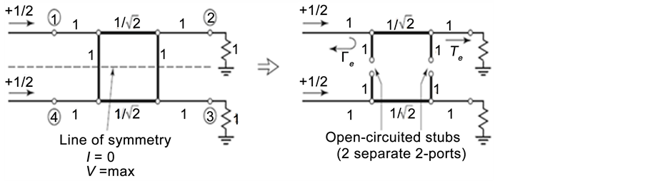 Figure 2. Decomposition of branch line coupler into even-mode excitation.