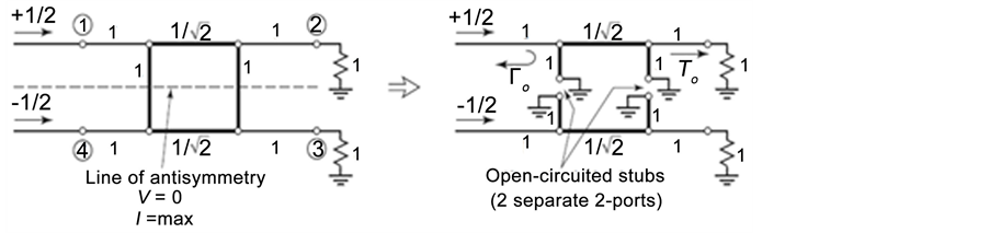 Figure 3. Decomposition of branch line coupler into odd-mode excitation.