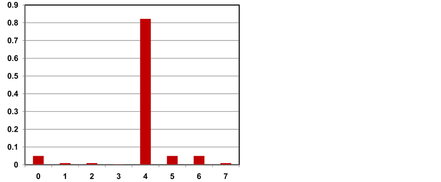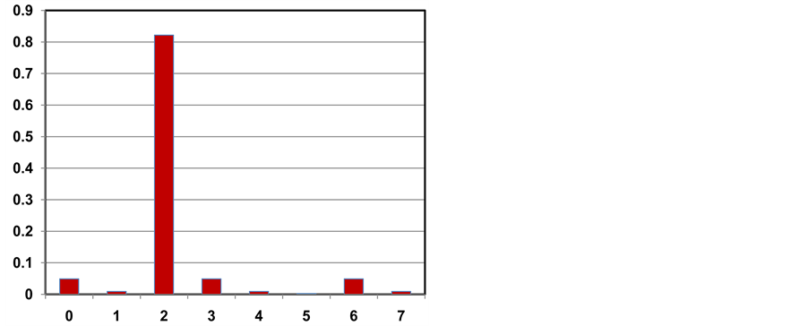 Another example of search coin is when the formula (26) is used with the quantum circuit shown in Figure 7. The probability for finding a solution is approximately 0.77, with w = 3.