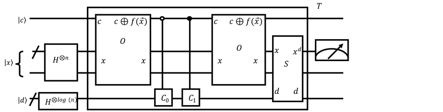 The quantum circuit of the random walk search algorithm is shown in Figure 1 [15] . This circuit does not actually depend on the shape of the searched graph. When the graph is different, the shift operator S has to be changed. Summarily, the steps of the algorithm are [20] :
