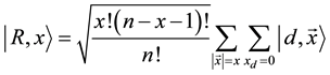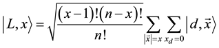 where x is the position of the particle on the line. The values of d (0 or 1) correspond to left and right directions. For the coin, a Hadamard matrix can be used: