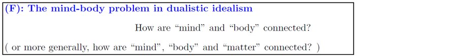 (I) the term “mind” and “body” in the mind-body problem (F) is ambiguous in Descartes = Kant epistemology.