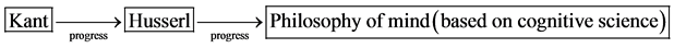 That is, the sentence “How are ‘mind’ and ‘body’ connected?” is meaningless in Descartes = Kant epistemology. Thus, there may be a reason to consider that the mind-body problem (F) is just “what we cannot speak about”. Therefore, according to Wittgenstein’s famous saying “What we cannot speak about we must pass over in silence” (in [11] ), some may conclude that we must speak nothing about the problem (F). That is, the mind-body problem is an illusory problem. However, I think, by (J) and (K) mentioned in the following section, that this second approach is not only non-productive but also wrong.