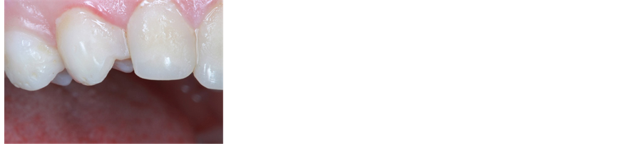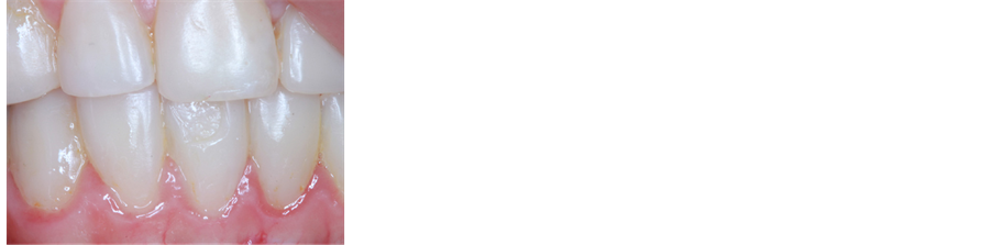 Case 2 was a 17-year-old female patient (D.Y.) with esthetic inadequacy of the anterior teeth. She had slightly yellowish/brown and stained, pitted, and hypoplastic enamel (Figure 5). The enamel appeared hard and shiny. The patient was the cousin of Case 1, and most enamel structure was similar to that of Case 1 with only low severity. There was no occlusal tooth wear, fractured enamel, or tooth sensitivity. Case 2 had small enamel and superficial dentin caries, and 2 old amalgam restorations on molar teeth 46 and 47. The erupted teeth, including the anterior and posterior region, were of normal dimension and morphology, and all teeth showed normal mesial and distal contact, normal occlusion, and normal angle Class I dental relationships. Open bite and overjet were not observed between the mandible and maxilla. The patient’s vertical dimension was normal. Oral hygiene was good, and the gingival tissue was healthy (Figure 5).