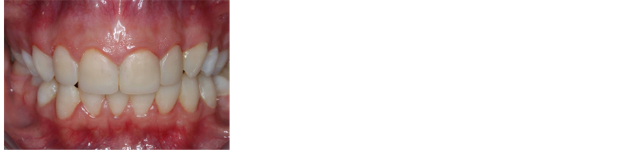 Case 1 was a 19-year-old female patient (B.Y.), who suffered from esthetic and functional inadequacy of maxillary and mandibular permanent teeth, and who presented no abnormal medical history or systemic problems except for AI. Her teeth were discolored slightly yellowish/brown, and had stained, pitted, and hypoplastic enamel. In addition, the enamel appeared hard and shiny (Figure 1). A complete dental and medical examination was performed on 10 family members, and six of them were diagnosed with AI. Deciduous teeth were also affected by AI. The oral hygiene of Case 1 was good and the gingival tissue was healthy. Caries risk was assessed by examining diet, oral hygiene, and general lifestyle habits. After assessment, Case 1 was placed in a “low risk” category because of the lack of active caries at the time of evaluation [28] . Her primary concerns included excessive tooth sensitivity and esthetic problems with the upper and lower anterior and premolar teeth. Regarding restorative procedures, direct restorations were indicated in accordance with the mild severity of the affected enamel, because the patient was a young individual and was concerned with good oral hygiene and economic, esthetic, and functional outcomes. In the posterior area, resin composites were used with minimal intervention, and, in the anterior area, freehand bonded composite restorations were performed using the same approach [19] [29] .