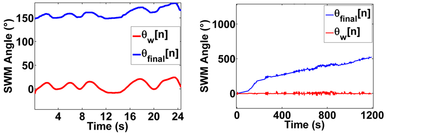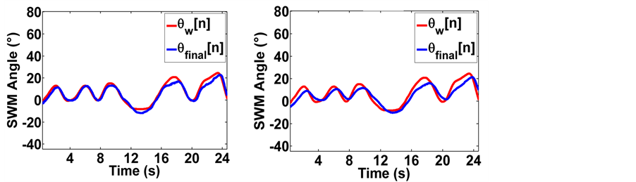 Figure 4. (a) High speed SWM outputs remained highly accurate representations of ground truth steering movements; (b) The final signal (right) matches the potentiometer signal.