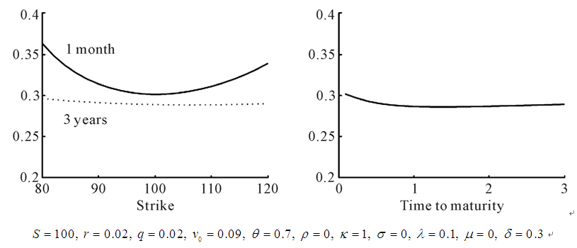 Figure 2 shows that adding jumps makes it easier to introduce curvature into the volatility surface, at least for short maturities.