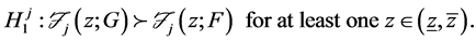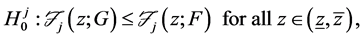 The general hypotheses for testing stochastic dominance of G with respect to F at order j can be written compactly as: