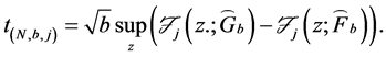 We have also to define a method in order to obtain the critical value of the test. The standard bootstrap does not work because we need to impose the null hypothesis in that case, which is difficult because it is defined by a complicated system of inequalities. According to Linton et al. [16] , we apply the sub sampling method which is very simple to define and yet provide consistent critical values. Following the circular block method of Kläver [18] , we have to compute again the test statistic for the sub sample of size b for each of the