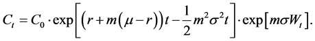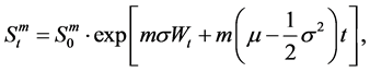 . The risky asset (for example a financial market index) is denoted by S. It is assumed to be a geometric Brownian motion given by: