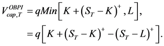 The terminal value of the capped OBPI with strike K and parameter L is defined by: