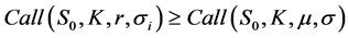 Table 2. Third order stochastic dominance according to implicit volatility.