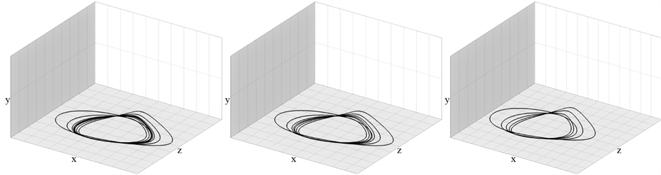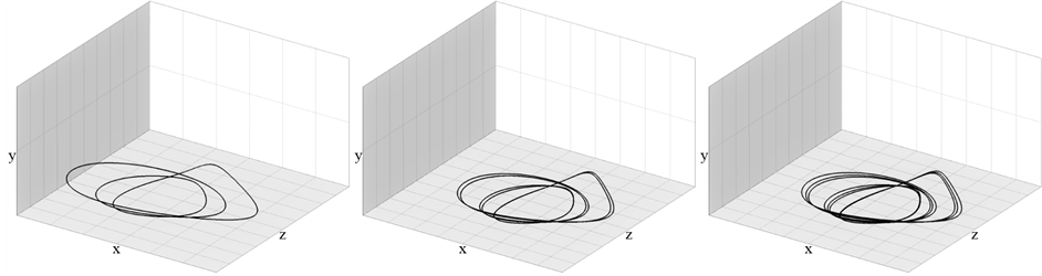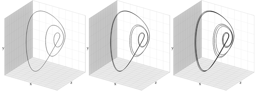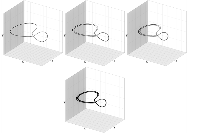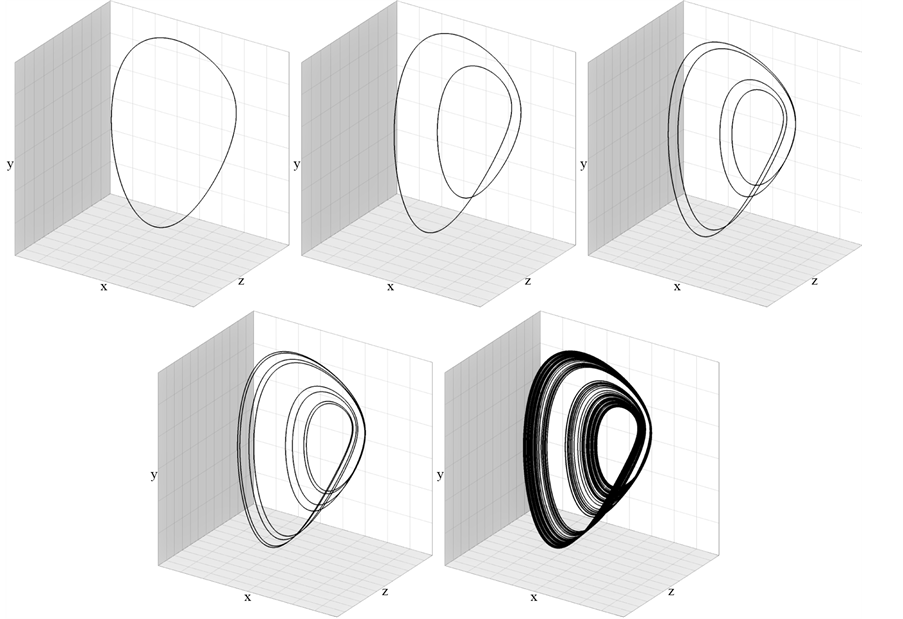 Figure 6. Cycles of period doubling cascade of bifurcations accordingly for the parameter values