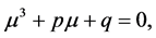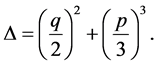 The equation (11) has one real and two complex conjugate roots if the discriminant