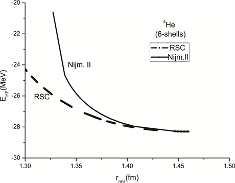 The energies versus using RSC and Nijmegen potentials are displayed in Figure 1. It can be seen from the figure that there is a reduction in