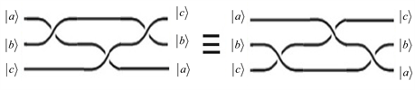 Diagrammatical representation of Yang-Baxter equation for a three-qutrit state is shown in Figure 1. Yang-Baxter equation is [13]