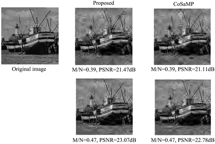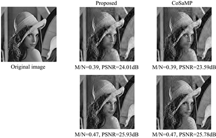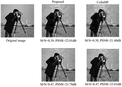 From Figure 4, we can know that the proposed algorithm is superior to the original algorithms CoSaMP. And we can see that the proposed algorithm has a better visual effect for different types of images. The improved algorithm can accurately recover the original signal.