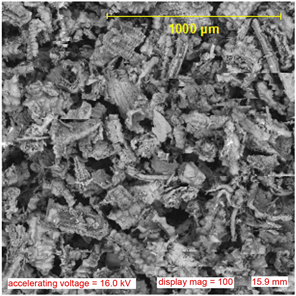 Figure 4. SEM image for RHA at 100 display mag. at 500˚C.