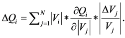 The derivation for the decoupled reactive power portion of the Jacobian follows the same pattern as the real power portion of the decoupled Jacobian. The following equations present the derivations for ΔQi, the change in reactive power at bus (i). All mathematical notation follows the same notation as the equations in section 2.1.