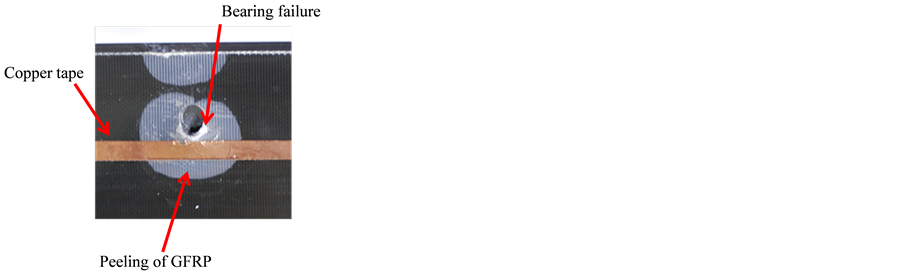 As shown in Figure 8, some laminate peeled off the GFRP which was caused by the damage created by the bearing failure. The effect of the GFRP peeling will be investigated in future research.