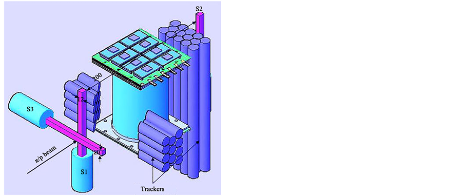 The prototype readout is composed by 4 columns of 32 pads of 3 × 3 mm2 each. Each pad is connected to a front-end board based on CARIOCA-GEM chip [14] with a discriminator threshold of ~2 fC. Six MDT layers have been used in the test as an external track reference. The spatial resolution reached by the external tracker was ~100 μm. The trigger of the setup has been generated by the coincidence of three scintillators S1⊗S3⊗S2, centred on the beam axis and covering an area of ~12 × 20 mm2 (Figure 6). Moreover, another scintillator, about 5 m far from the S1, S2, S3 cross, has been acquired in order to perform a measurement of the particle momentum crossing the prototype by means of time of flight. The measured momentum resolution for pion and proton beams in the momentum range between 100 and 440 MeV/c was less then 1%. A schematic view of the