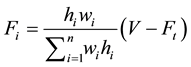 is the applied lateral force at level “x”, W is the story weight, h is the story height and V is the design base shear, and N is the number of stories. The summation in the denominator is carried through all story levels. This results in an inverted triangular distribution when k is set equal to unity. A uniform lateral load distribution consists of forces that are proportional to the story masses at each story level.