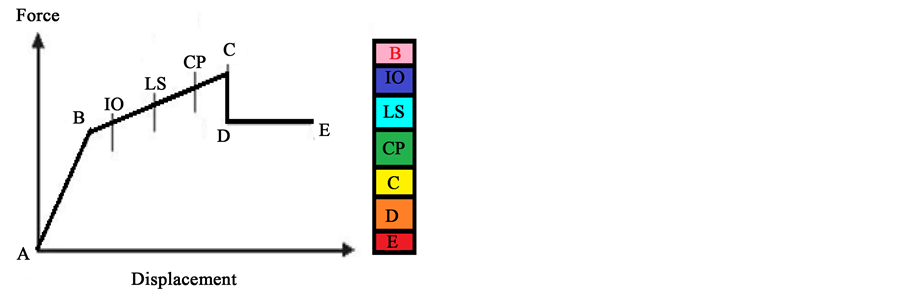 The plastic deformation in the four buildings, i.e. the five points values, A-B-C-D-E, as shown in Figure 7, can be obtained after the SAP2000 analysis. The range AB is elastic range, B to IO is the range of immediate occupancy, IO to LS is the range of life safety and LS to CP is the range of collapse prevention. If all the hinges are within the CP limit then the structure is said to be safe. However, depending upon the importance of structure