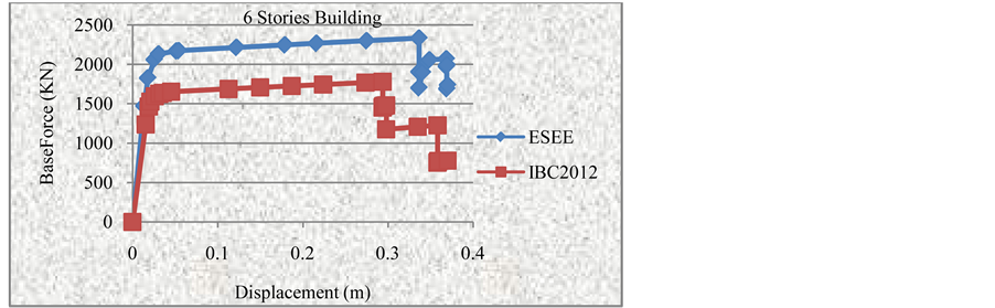 Figure 19. Pushover curves for 6-stories building using IBC2012 and ESEE.