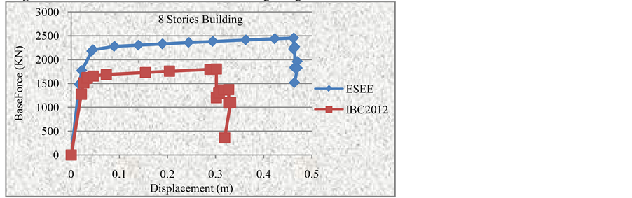 Figure 20. Pushover curves for 8-stories building using IBC2012 and ESEE.