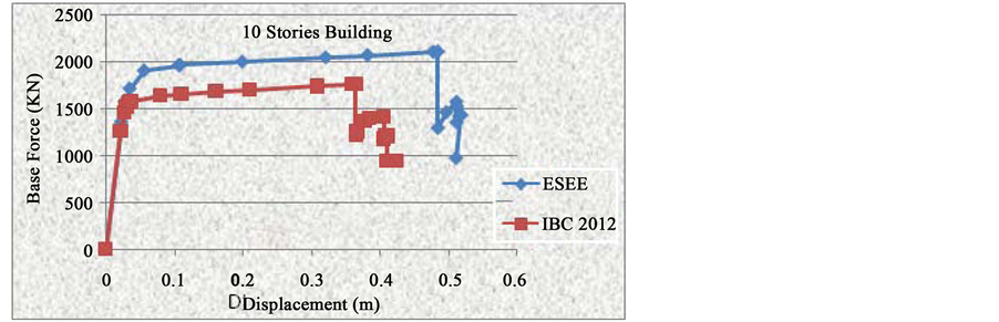Figure 21. Pushover curves for 10-stories building using IBC2012 and ESEE.