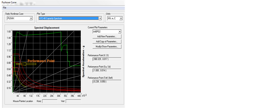 4) The buildings that are designed according to ESEE and IBC2012 are satisfactory. The performance point location is at IO (Immediate Occupancy) level. It means that the design satisfies pushover analysis according to ATC-40.