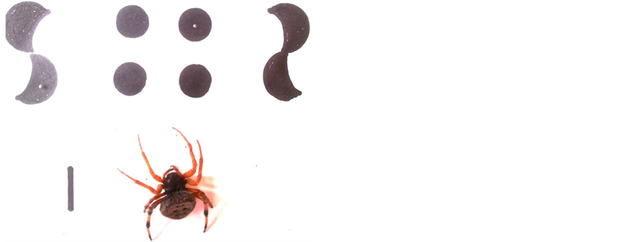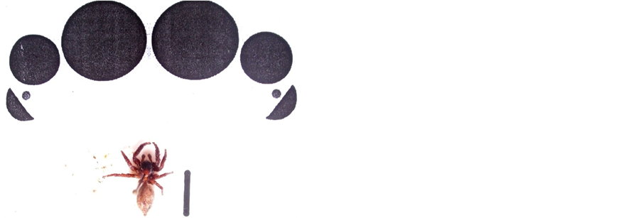 Plate 2. Showing Araneidae and its eye arrangement pattern (scale bar represent 1 cm).