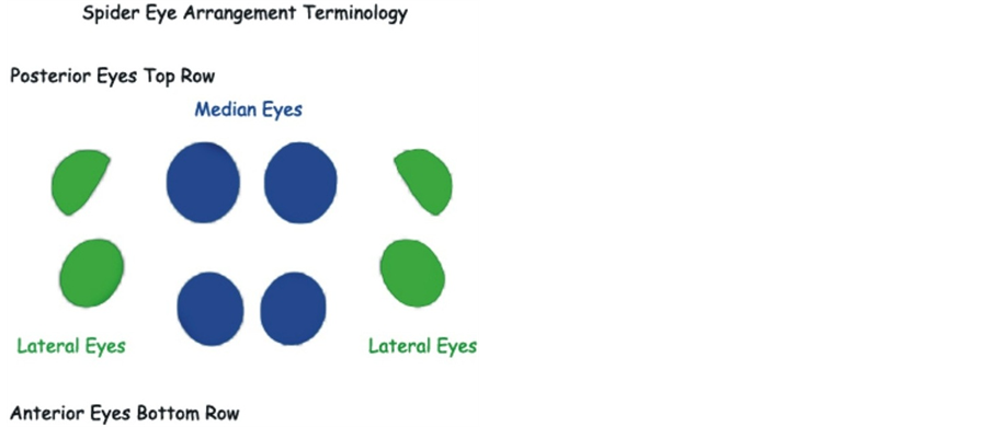 All the spiders families found in this study have 8 eyes with various patterns of arrangements. Cave spiders which live in the dark have no or any eyesight is not found in this study. Spiders have 2 types of eyes; the main and the secondary eyes, the main eyes are the middle and the largest of the 8 eyes and most of spider in this study possesses it. The eyes of spider differ greatly between the families. Spider who hunt without a web like wolf spiders (lycosidae), lynx spider (oxyopidae) and jumping spiders (salticidae) has well developed eyesight. Jumping spiders are very prominent and can see as humans because it has various eye patterns. There are so many spiders that give various nasty bites comparable to the stinging of a wasp. Most of the venom injected with these bites causes cell death and give rise to a wound that does not heal properly and becomes easily infected, such spiders are not found in the course of this study.